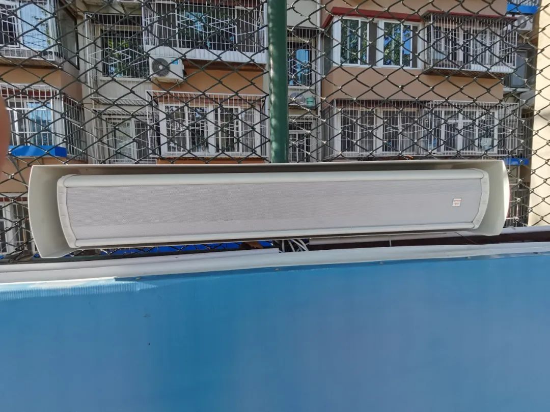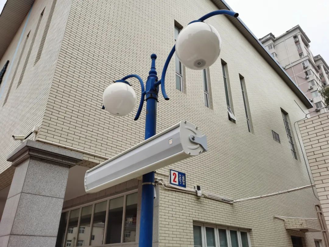 (安裝的相控陣音柱將廣播聲音集中在操場區(qū)域)