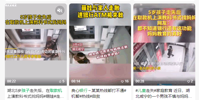 不僅如此,銀行ATM機的緊急求助功能,多次幫助走失兒童和困難人群,起到了社會救助的作用。很多網(wǎng)友表示“被孩子上了一課”。