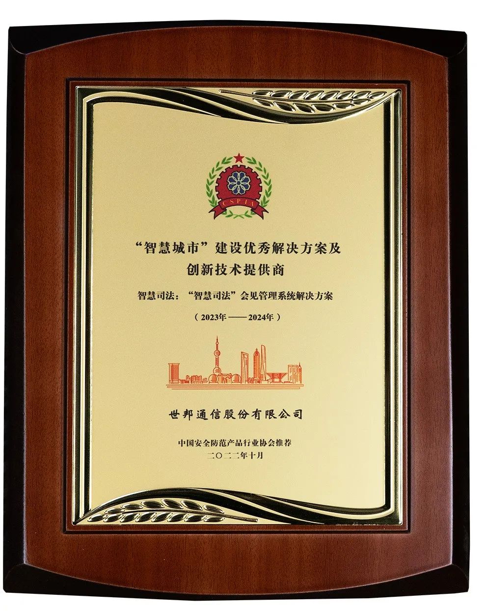 新年喜氣洋洋,世邦通信憑借“智慧交通”鳴笛抓拍技術(shù)及解決方案和“智慧司法”會見管理系統(tǒng)解決方案被中國安全防范產(chǎn)品行業(yè)協(xié)會評為“智慧城市”建設(shè)優(yōu)秀解決方案及創(chuàng)新技術(shù)提供商。
