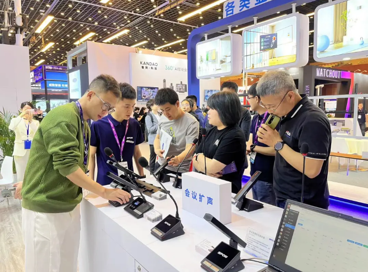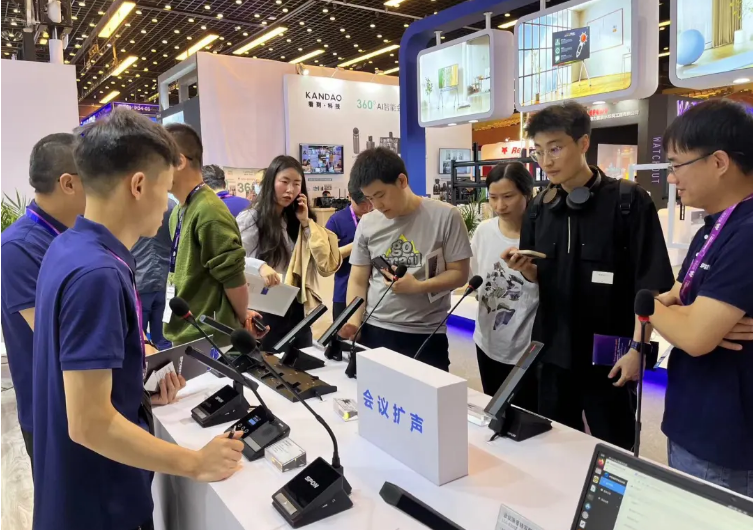 現(xiàn)場人潮攢動、絡(luò)繹不絕。世邦向來自世界各地的朋友展示世邦產(chǎn)品及場景應(yīng)用解決方案,運(yùn)用人工智能等新一代信息技術(shù)構(gòu)建智慧生態(tài),守護(hù)美好生活。世邦賦能專業(yè)視聽,此次展會展示的IP公共廣播系統(tǒng)、IP數(shù)字會議系統(tǒng)、定向音柱等專業(yè)視聽技術(shù)產(chǎn)品及創(chuàng)新解決方案都受到熱烈歡迎。