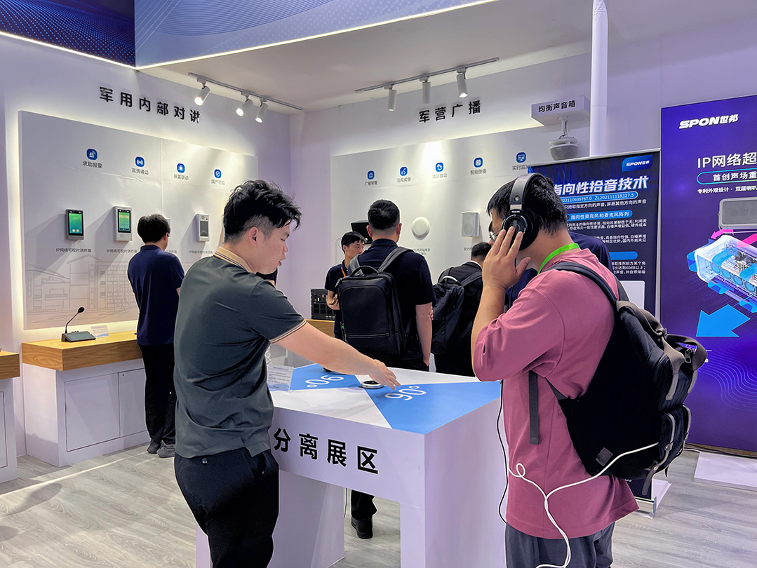 展會首日,世邦展臺吸引了眾多參展客戶,世邦提供以音頻為核心的解決方案,并展示了多項(xiàng)自研技術(shù),支持根據(jù)具體場景實(shí)施落地方案,全國產(chǎn)化音頻智能物聯(lián)解決方案,助力國防領(lǐng)域國產(chǎn)化自主率提升。參展客戶紛紛蒞臨展臺,現(xiàn)場感受世邦產(chǎn)品帶來的真實(shí)效果,并詢問核心技術(shù)的場景延展應(yīng)用。
