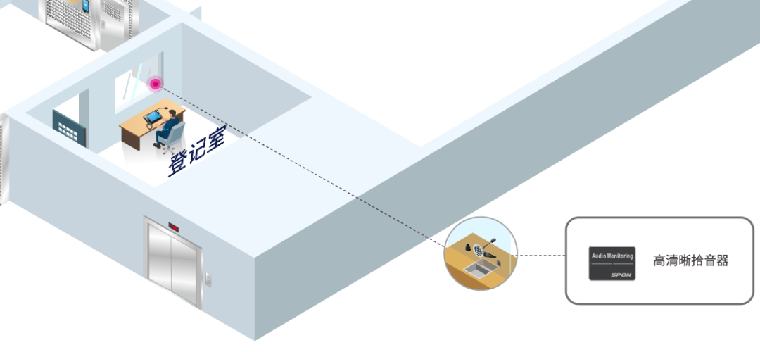 建議在登記室等窗口位置部署貼裝拾音器,能夠最大限度接近音源。